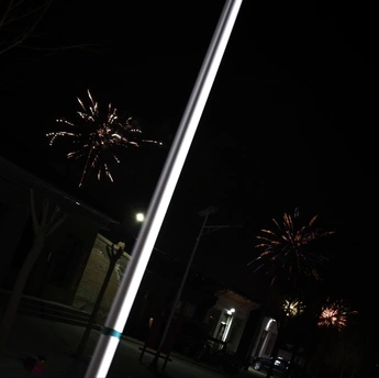 在乡镇过年,正逢除夕烟花,廖廖的远处,几抹烟花同时绽放,远近错落有致,十分和谐。