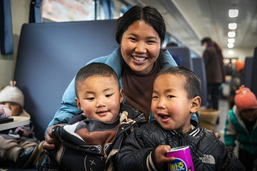 拍摄于攀枝花至普雄的慢火车,彝族母亲与孩子幸福的微笑