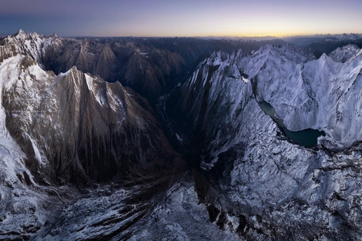 拍摄于川西来古冰川,利用变形接片处理形成黑与白同框的冰川
