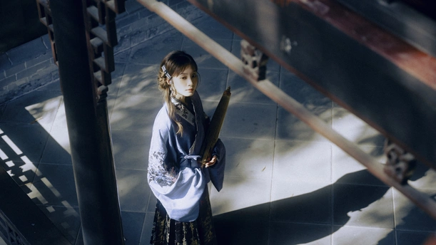 木廊漏下碎金般的光, 竹卷轻握,衣袂沾着草木香。 檐角的风穿过旧时光, 把心事都藏进这一方静谧的庭院里。 不必问今夕何夕, 只愿在这光影交错间, 偷得浮生半日闲。