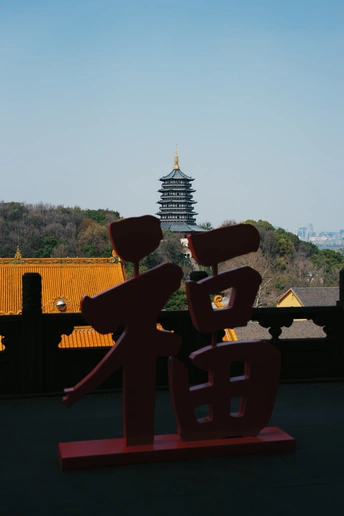红“福”静立,把人间祈愿都凝在这一方剪影里。 雷峰塔在晴光里沉默, 飞檐翘角,托着千年的云与风。 不必向外求福, 心安处,便是归处; 塔影间,自有禅意。