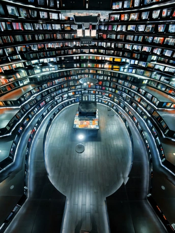 钟书阁的穹顶之下,是书海织就的星轨。镜面折射出万千书脊,与层层环廊交织成时空隧道。行走其间,仿佛坠入知识的银河,每一本书都是一颗闪烁的星。光影在书页间流淌,静谧中蕴藏着无尽的宇宙,这不仅是书店,更是一座让灵魂漫游的精神空间站。
