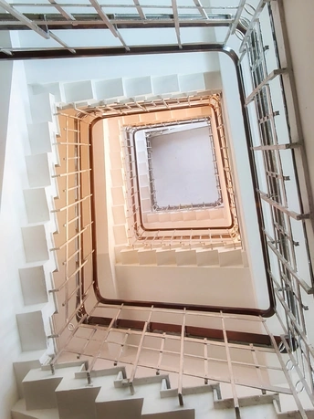 垂直向上的凝视里,白色阶梯层层叠叠,框出一方通往深处的几何隧道。暖光漫过棱角,金属栏杆在光影里划出利落的线条,像被精心编织一般。 上个世纪的建筑螺旋之美依旧。 ------------------------------------ 编辑老师抱歉,由于天花板有个脱皮,我消掉了,多次重发。