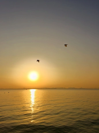 清晨的风带着寒意,让人不禁颤抖。 当朝阳升起的时刻,温暖瞬间降临。海边的渔船随浪起伏,白鹭掠过海面,海港的入口处水波涟涟,日上蓬帆金光万丈。 这样的春日朝阳是那么的迷人,这早起是值了。希望2026我们都如这朝阳般的美好。