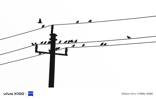 停在电线杆的鸟是无数的点,分割着线条。黑白让画面回归绝对的静默,干净利落。