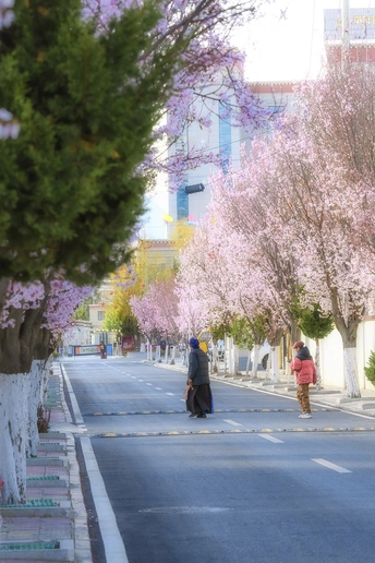 春天,山南市泽当城区花开的小巷。