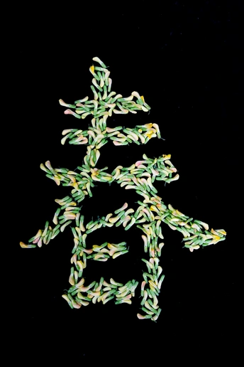 春菜上新,用金雀花组成一个春字