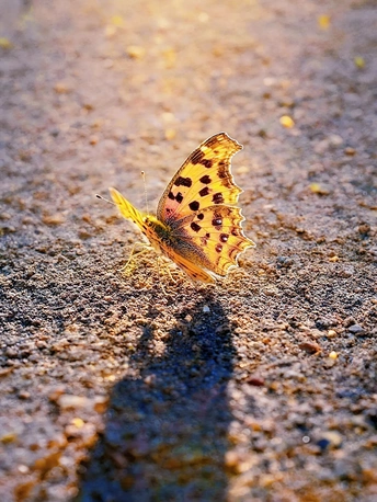 这只黄钩蛱蝶,是我在春日郊野的泥土路上偶遇的惊喜。 那天为了拍一组春日光影,我背着相机在田埂间走了整整两小时,脚边的泥土被晒得暖烘烘的,正当我准备收机时,它忽然扑棱着翅膀落在了我脚前。 我屏住呼吸蹲下身,把相机调到最低角度,侧逆光一点点勾勒出它翅膀上的黑斑与金边,连泥土里的细沙都在光里闪着碎金。 它就那样静静停了30分钟,仿佛知道我在为它留影,直到风再一次吹起,才抖落一身阳光,飞向远处的花丛。 原来最好的风景,从来都不在远方,而在你愿意慢下来,蹲下身去看见的每一个细碎瞬间里。 📸 拍摄参数:f/2.8,1/125s,ISO100,侧逆光低角度俯拍 📍 拍摄地点:城郊山野小路