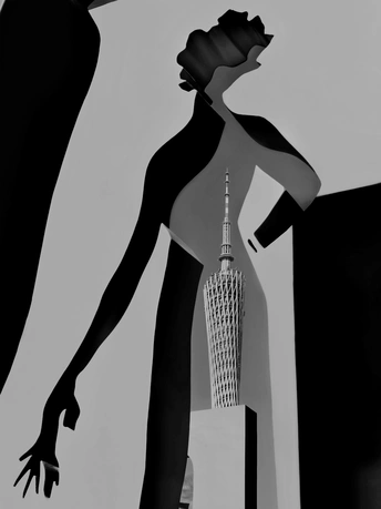 黑白影调里,几何剪影成为天然画框,将广州塔框进构图的黄金分割。 硬朗的轮廓线与塔身的菱形肌理形成视觉张力,高对比度的光影强化了建筑的结构感。 镜头用减法滤去色彩喧嚣,只留下线条、光影与空间的对话,让这座城市地标在极简构图里,呈现出摄影最本真的形式美感。