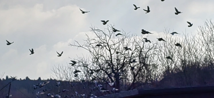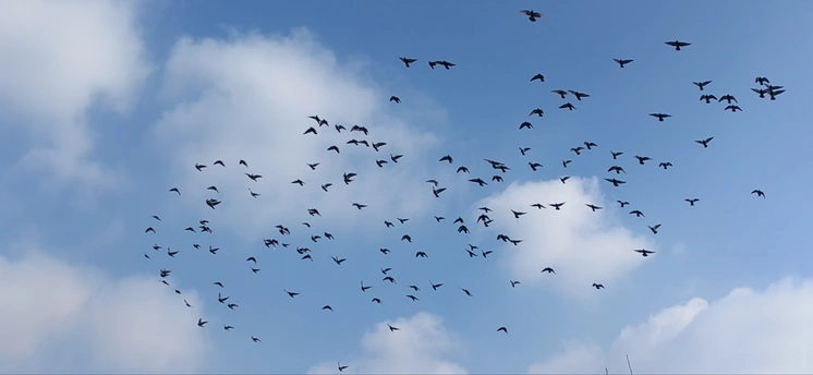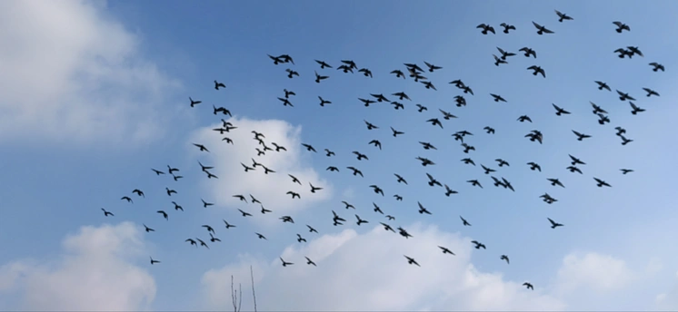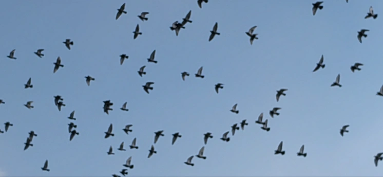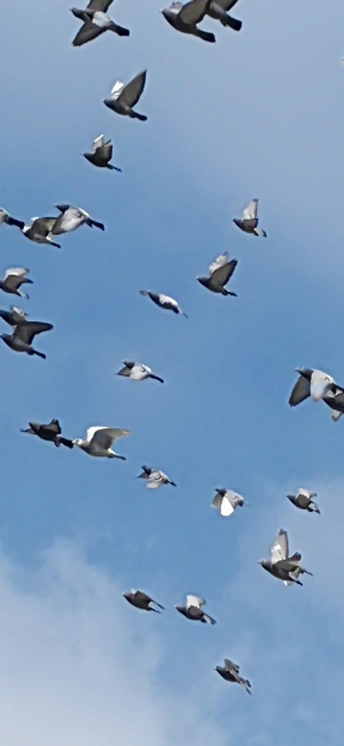 群鸽冲汉起,万翼剪春光。不逐尘间色,唯追云外香。
