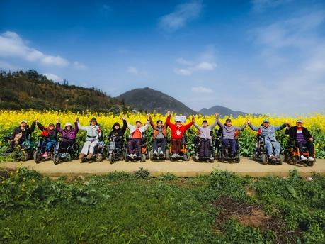 在金灿灿的油菜花田前,这群特殊的“骑士’用轮椅丈量春天。他们高举双手,不仅是拥抱花海,更是拥抱生命中每一个灿烂的日子。 献给所有热爱生活的人!