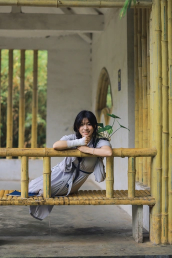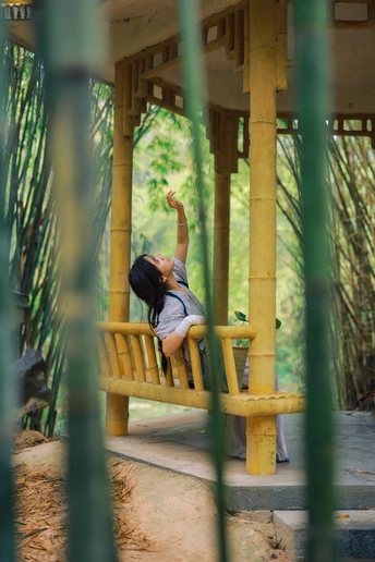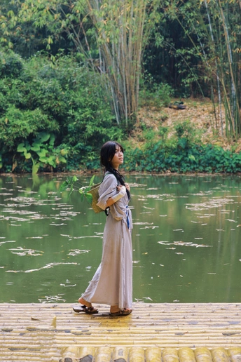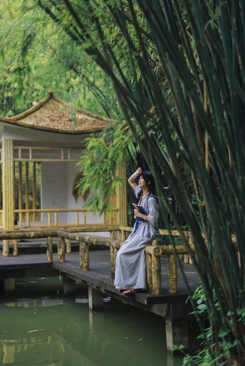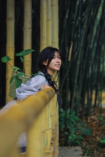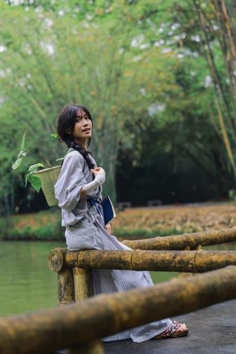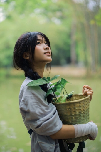 背着一篮新绿,在竹溪间漫步。 没有目的地,只有风与叶的低语。 偷来这半日清闲,只与自然相伴。