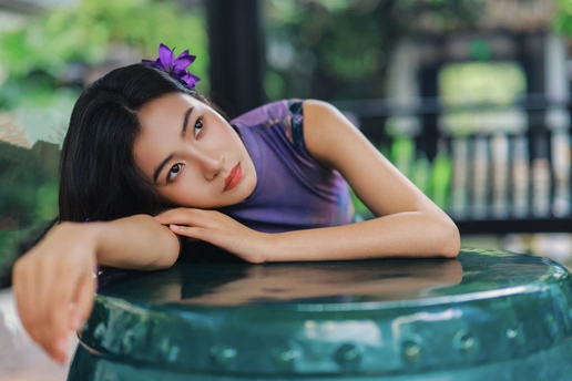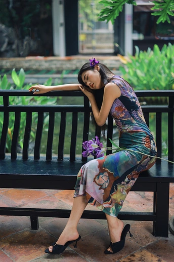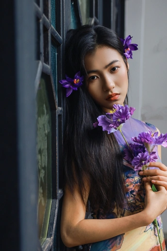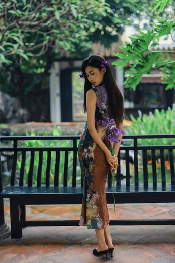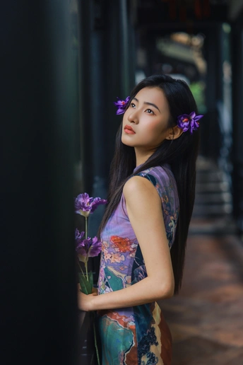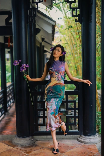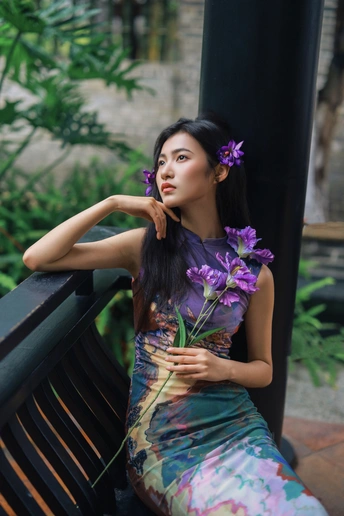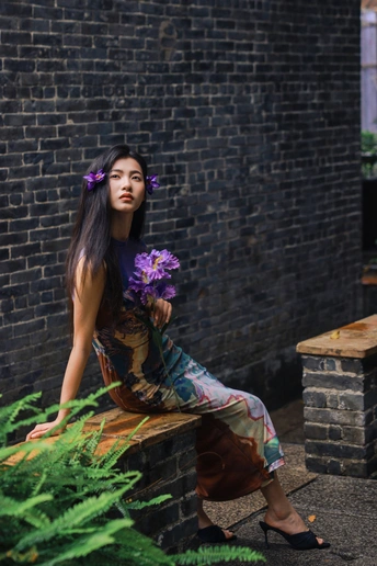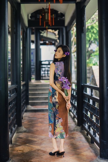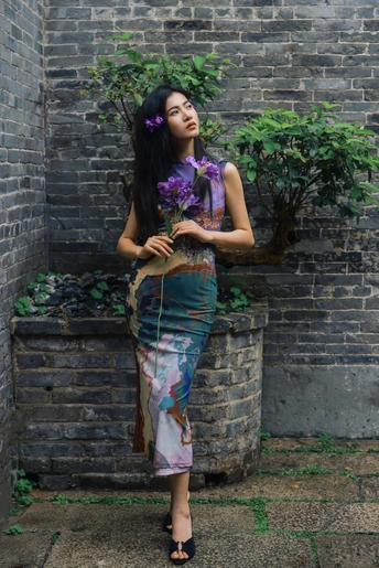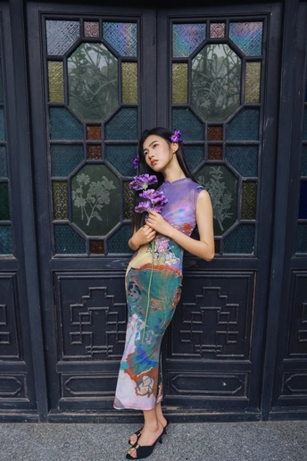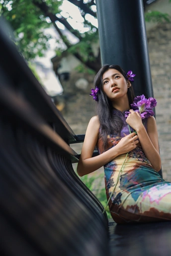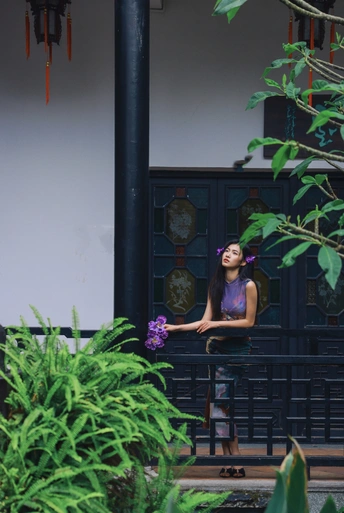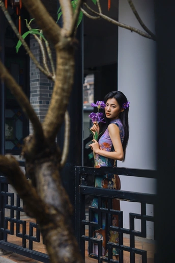 紫花落在旧时光里, 青墙、木廊、旗袍的褶皱里, 都藏着春天慢下来的温柔。 风穿过老院子, 把一整个春日的慵懒, 都揉进了这片刻的沉静里。