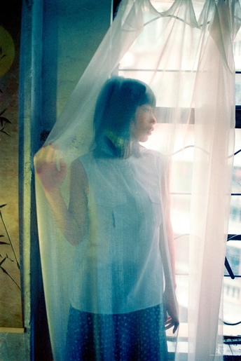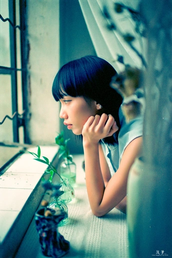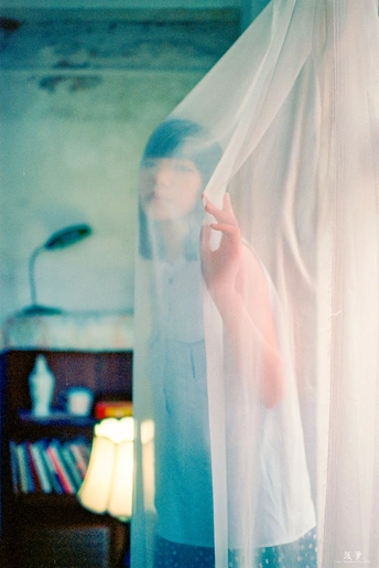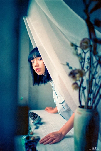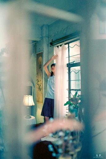 旧窗纱漫过青蓝光影, 台灯暖光揉碎时光褶皱。 指尖轻触的不仅是灯罩, 是未寄出的信, 是慢镜头里, 一整个夏天的慵懒与念想。 出镜:秀敏 配方:尼康F100|电影卷5219|尼康35/1.4G|手工冲洗(卤化一切ECN-2)|自扫描(Plustek OpticFilm 8100)