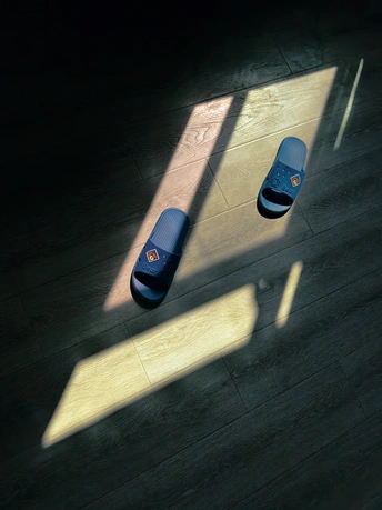 阳光斜洒木地板,两只拖鞋静卧光斑中,如主人刚走开的脚步。温暖光影勾勒日常诗意,平凡物件诉说生活温度,定格时光里最柔软的瞬间。