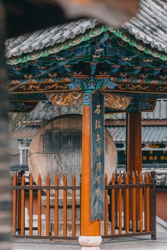 金沙江在这里拐了一个弯。 地图上,那道弯曲的弧线不过是一笔带过,但站在石鼓镇的江岸边,你会觉得那是某种刻意的停留——江水走了太久,在这里慢下来,绕了一圈,像是舍不得走。 石鼓,这个以一面石碣为名的小镇,就安静地坐落在这道弯的旁边,已经坐了一千年。 碑亭还在。亭角的瓦片生着青苔,石碑上的字迹经年累月地浅下去,但依然认得出。 铁虹桥的铁链锈迹斑斑,老戏台的木柱子开了裂,石板路的缝隙里长出细草……这些东西不说话,只是立在那里,和走过的人对视。 一百年前有人走过,五十年前有人走过,今天你走过,它们见过的,比任何人都多。 在某个普通的街子天之后,消息就来了,关于那座水电站的消息。 确切的时间没人说得清,但水位会上涨,这是确定的。那些石板路、老戏台、铁虹桥,那些街子天的吆喝声、凉粉的香气、钟表店里滴答的声响——或许都会在某一天,沉进江水里去。金沙江还是那条江,只是镇子不在了。 此景可待成追忆。