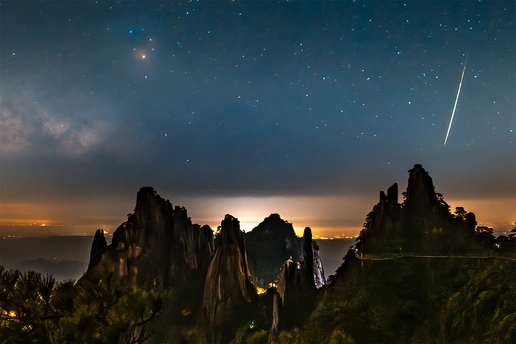 11mm的鱼眼,在拍延时时候抓到的一颗流星,还好有4500万的低,随意裁切
