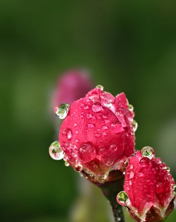 谁懂啊!这颗露珠直接把春天焊在了花苞上 微距镜头下,每一滴水珠都是春日的迷你水晶球,把红粉花苞、嫩绿枝叶全封存在里面。 这哪里是花?分明是春天藏在枝桠间的浪漫彩蛋,用镜头定格微观世界的极致温柔,这才是春日摄影的天花板!@活动推荐 @美拍推荐官@美拍小助手@美拍专访