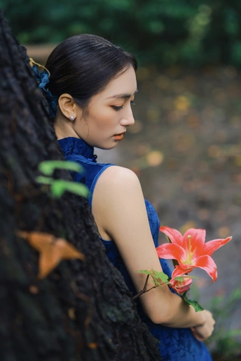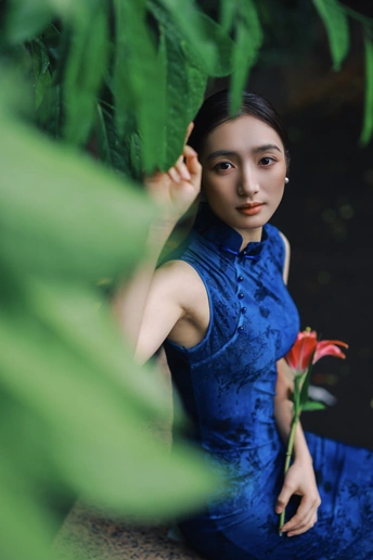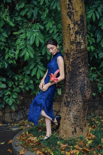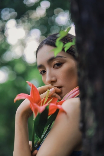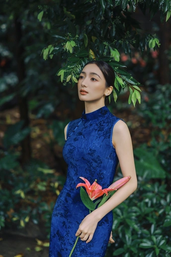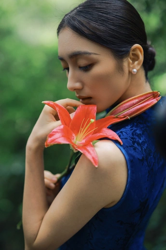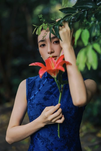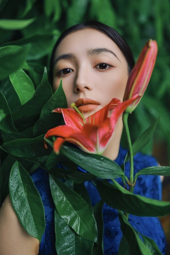 雨后青石,绿意如染。 手执百合,点染一庭烟雨。 这抹东方的静美, 在于翠绿的含蓄,与红的果敢。