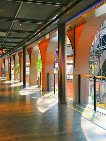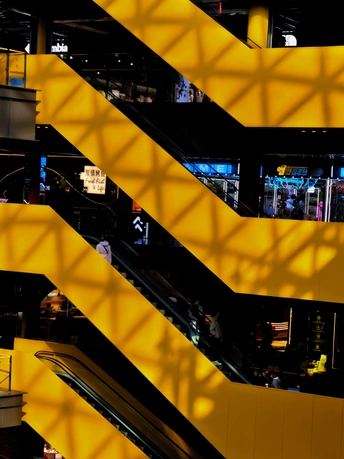 家人们!商场直接把自己玩成了科幻大片? 一边是无限延伸的拱廊时空隧道,一边是几何切割的金色光影迷宫,两条通道直接把普通商场,变成了异世界入口。 不用特效,随手一拍就是双倍快乐!