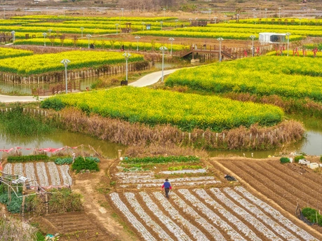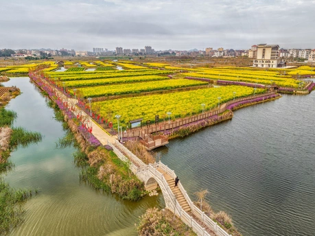 春风渡水,漫过闽地的阡陌田垄。 纵横的水网,把春日裁成一块块金黄的诗行。油菜花顺着流水的方向盛放,木桥连起两岸花香,石桥载着往来春光。田垄间的身影,是土地最生动的注脚;漫野的花潮,是春日最盛大的告白。