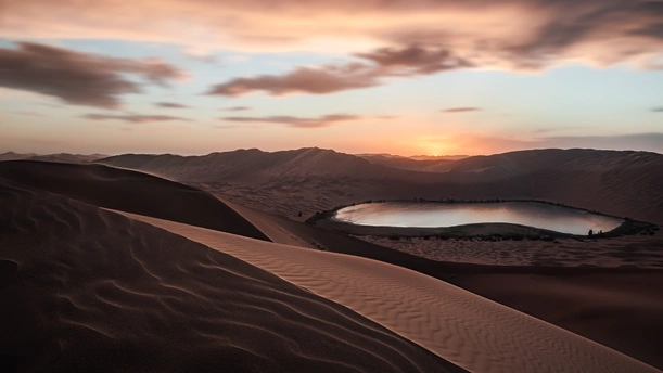 Twilight Over the Desert Lake 拍摄于2020年8月的巴丹吉林沙漠。暮色降临,余晖掠过起伏沙脊,在辽阔沙海之间照亮一泓静湖。风纹、山影与微光层层铺展,让这片苍茫之地在寂静中显出温柔而深远的力量。#巴丹吉林沙漠 #沙漠摄影 #暮色沙海 #沙山与湖泊 #风纹之美 #大地肌理 #自然风光 #风光摄影 #佳能# #与自己对话直到世界尽头# #live这一刻#