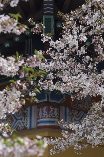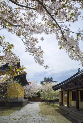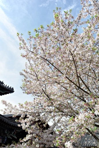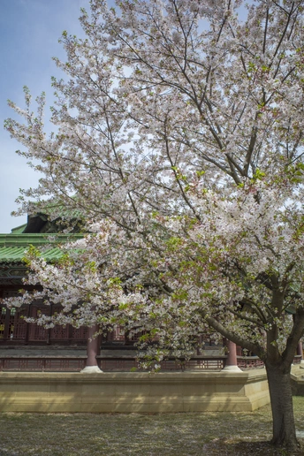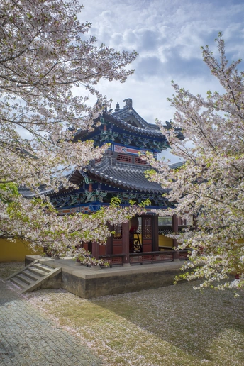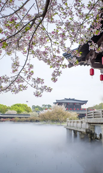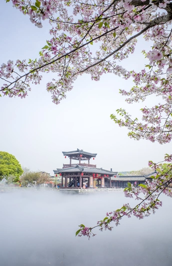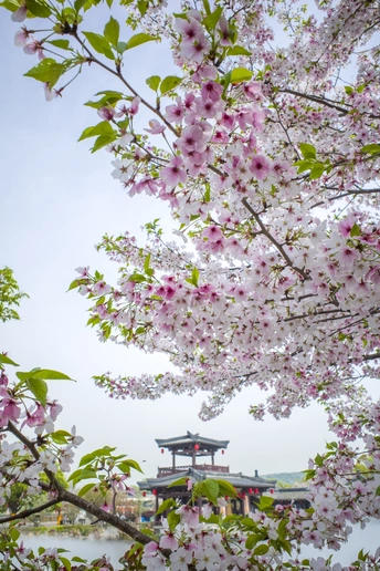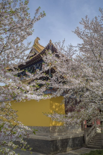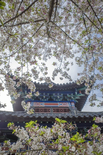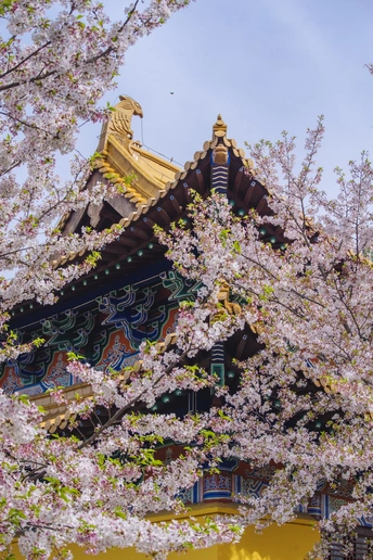 仿古建筑前的樱花格外美!一半在树上,一半在地上又是另一种美!这个清明假期正好赶上了樱花的盛大花事