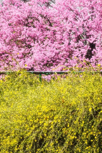 被这满屏的粉与黄狠狠治愈了!粉花如云漫过枝头,黄花似瀑倾泻而下,春日的浪漫直接拉满。