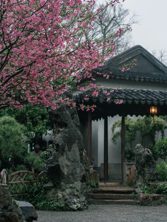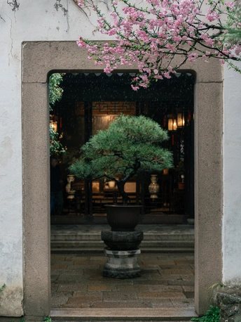 苏州园林的花季,就算不是晴朗天气的春和景明,阴雨天的百花争艳和古朴静谧的园林相得益彰,别有一番风味意境