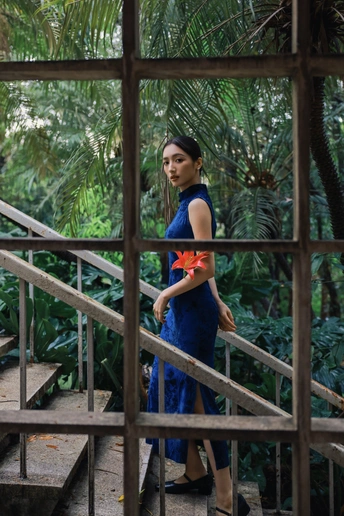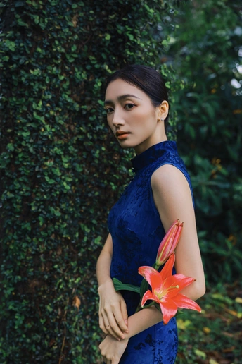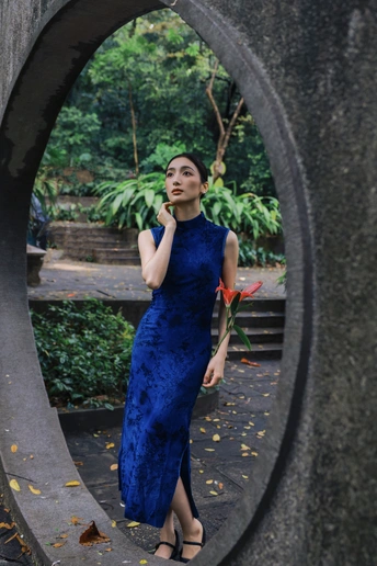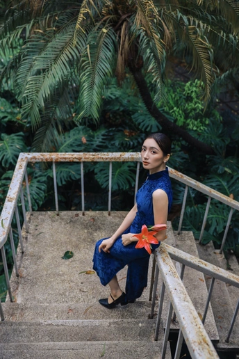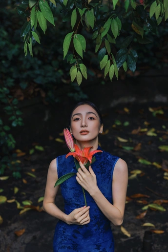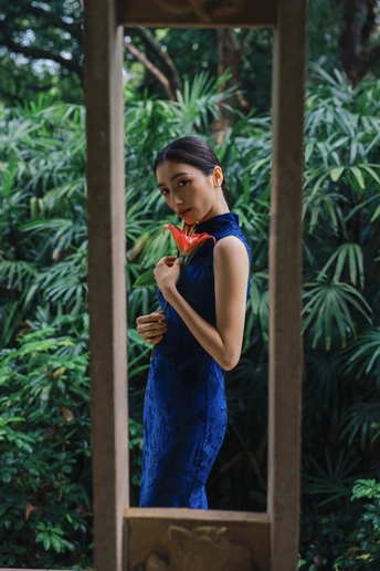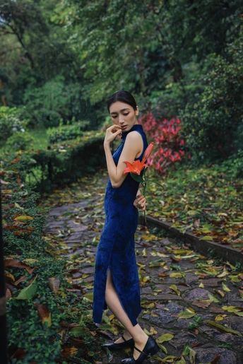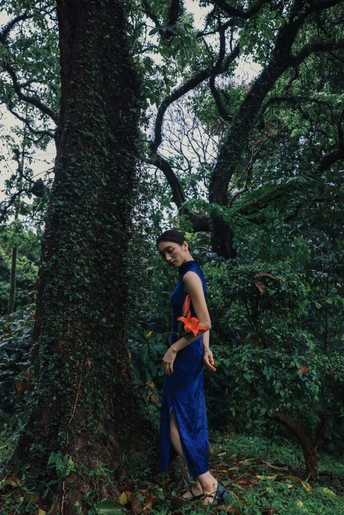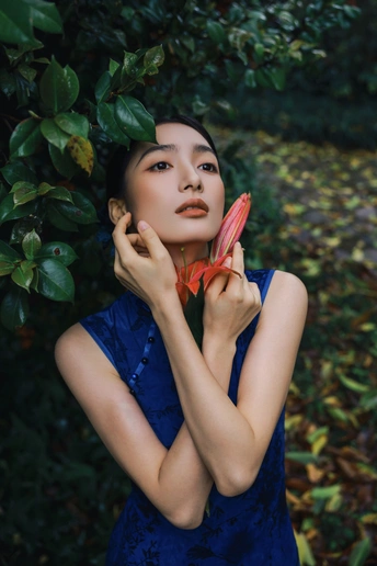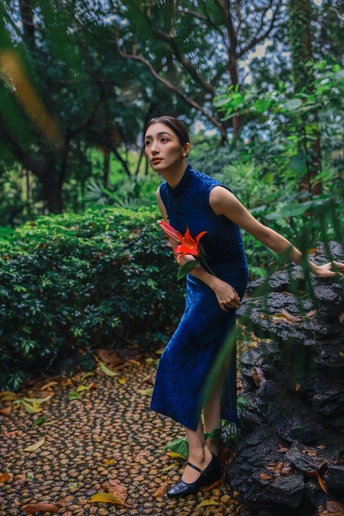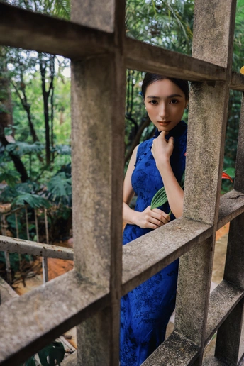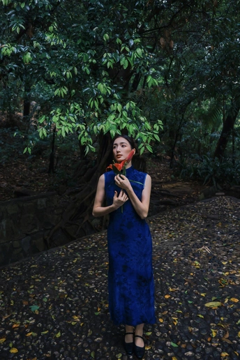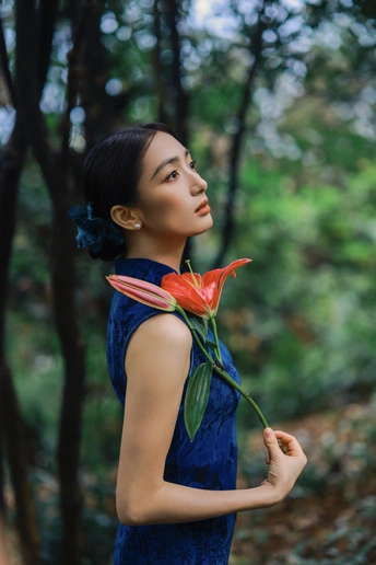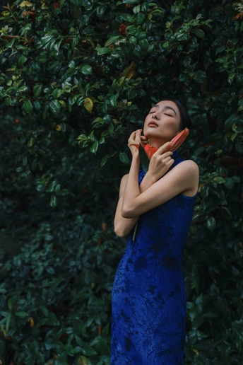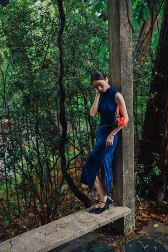 绿意漫入林间,光影落在衣袂。 一袭蓝韵,静立时光深处。 不喧不闹,自有东方温柔。 于草木之间,遇见最从容的姿态。