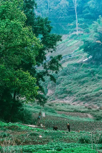 碧潭裹着山的影,农人把脚印种进田的软,担着桶的步、弯着腰的轻,连雾里的屋都浸着 “慢下来就很好” 的暖。这些沾着土的日常,是山野写给生活的诗:不用赶时间,只跟着水的缓、田的软,把日子过成轻的呼吸。
