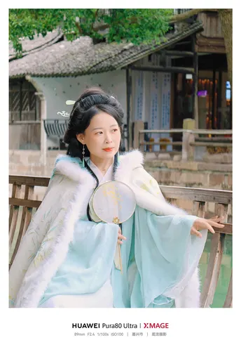 白裘裹着春的软,团扇摇着梅的轻,青丝簪着花的甜,水乡的风都浸着柔,连回眸的影,都像从旧画里漫出来的暖。这帧江南,是软烟罗裹着的温柔:不用寻景,人站在那里,就是水乡的诗。