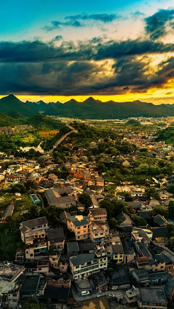 青岩古镇山与城的黄昏诗,云层裹着落日的金,古镇嵌在山的柔里,灰瓦叠着烟火,巷弄藏着旧时光,连风都浸着 “山城里的慢”。这帧黄昏,是古镇与群山的温柔相拥:不用寻路,抬眼是云的暖,低头是巷的软,日子就慢成了诗。
