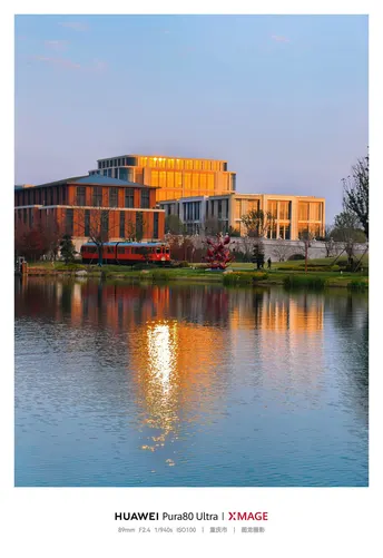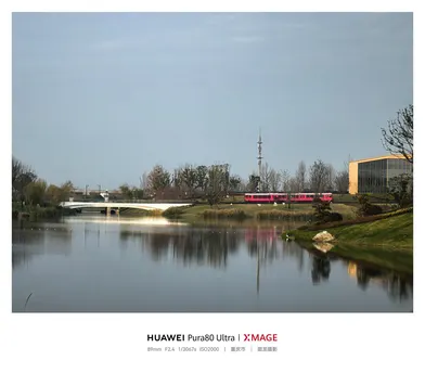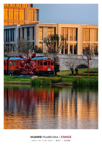 练秋湖的波,漫过华为园区,把硬朗的建筑棱线揉成一捧软光。这里没有写字楼的逼仄拥挤,只有楼宇沉在水里的倒影,晚霞漫过玻璃幕墙,漫出一层温温柔柔的暖。科技的锐利与湖水的温润,被晚风轻轻缠在一起,织成日常里最动人的诗。就连通勤小火车,都像是从画境里缓缓驶出,载着一行行代码,也载着湖岸漫不经心的闲逸。 ---------------------------------- ■ 手机:HUAWEI Pura80 Ultra ■ 地点:上海·练秋湖