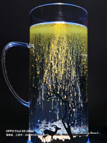 维生素B2倒入水杯中,在光影律动之下就好似天空中降落的流星雨