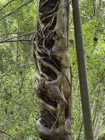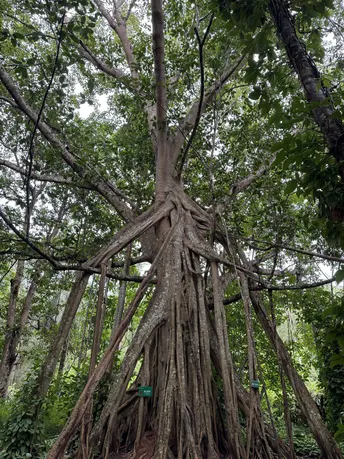 在我眼前的是由多种绿色组成的世界 不愧是#中科院热带植物园 这也是我早早期待的一站 早晨入园,神清气爽、心旷神怡 上千年历史的植物树木就在面前 树的身上还留着水的味道, 很清新的味道,树皮上还能看到水珠 毛毛虫们懒洋洋的趴在树干上 站在一颗大板根面前 感受生命的野性和澎湃能量 蕨类、野花、百果、王莲 老筋生花、绞杀现象、 独树成林的热带雨林奇观目不暇接 植物星球充满难以想象的智慧 枝干的缺口当中保持着边界的谦和 也映着云南的湛湛青空,悠悠白云 每棵植物都有光的行动, 就像大丽花保留了太阳的火炭, 有一种统一体在太阳、树和花中间实现