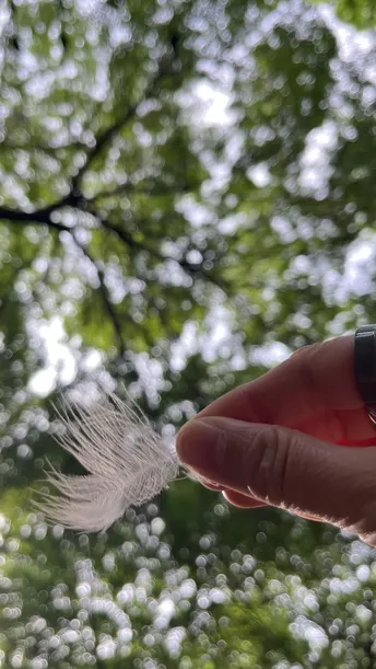 羽毛從空中緩緩飄落,如時光的碎片,承載著歲月的故事,彷彿在訴說著往昔的回憶。