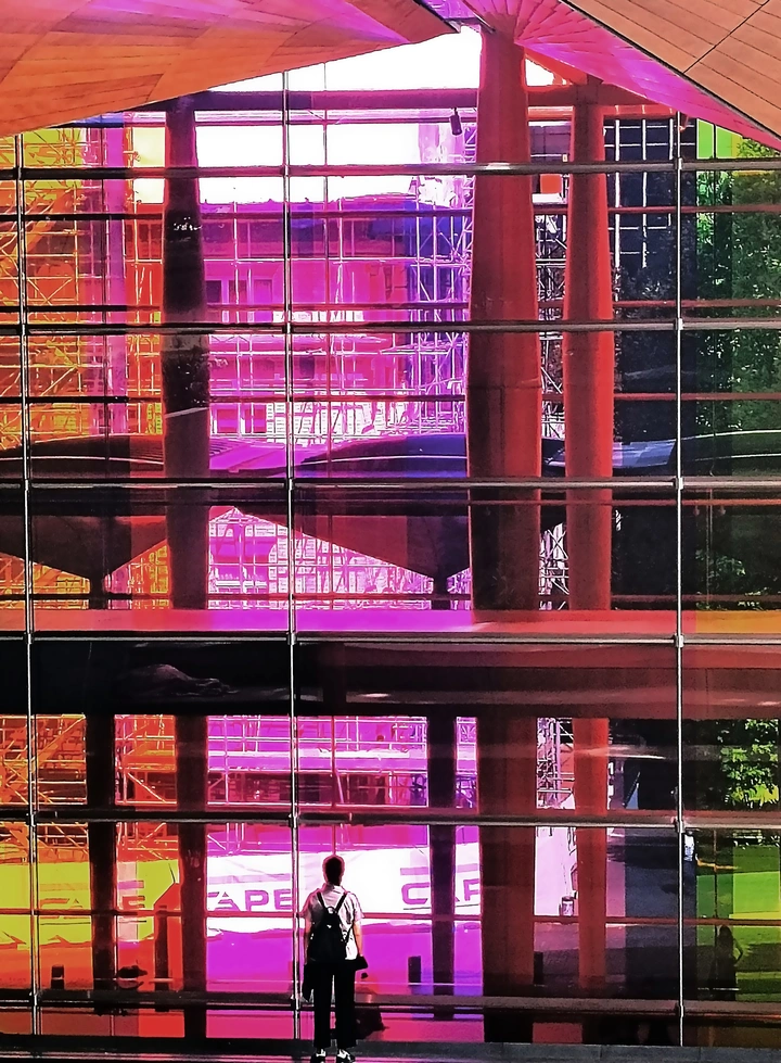 抓拍于新西兰奥克兰城市中心广场楼间彩色通道