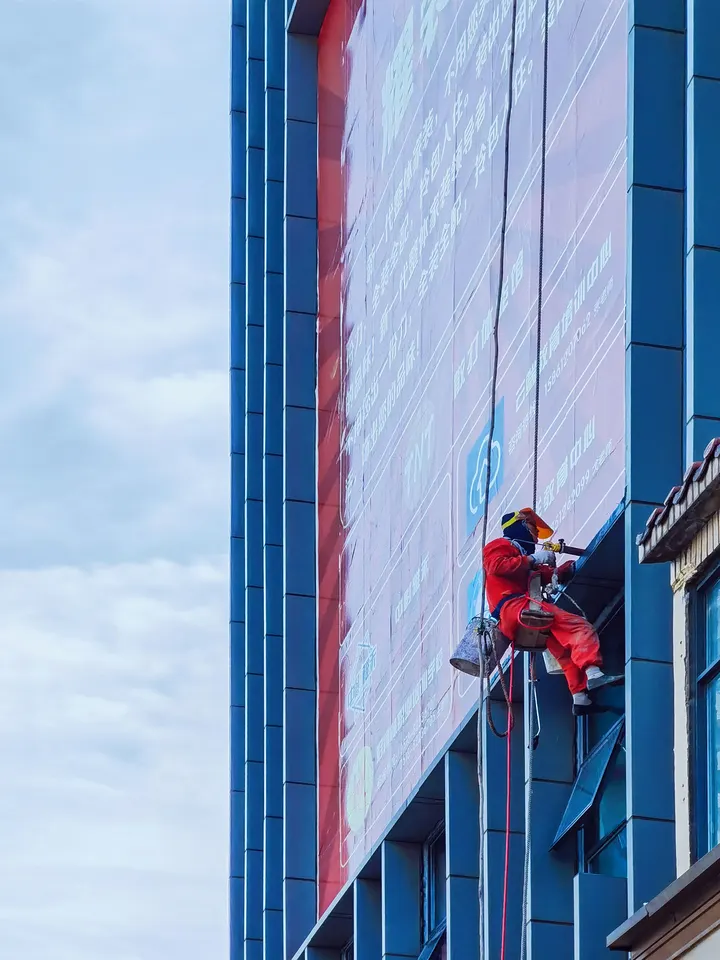 城市的高楼之间,那抹鲜艳的红格外醒目。他们是游走在高空的 “蜘蛛侠”,以一根绳索为依托,在楼宇的肌理间作业。脚下是车水马龙,头顶是流云蓝天,每一次俯身、每一次抬手,都在为城市刷新着崭新的模样。致敬这些平凡又伟大的高空劳动者。