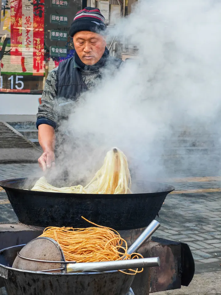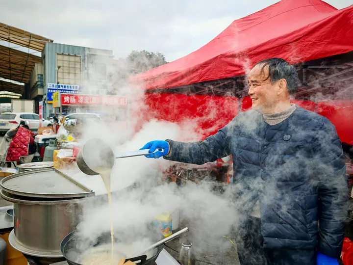 红棚子下,是最接地气的生活。大叔手里漏勺一扬,热气裹着香气就漫开了。排队的人们眼里带着期待,这碗热食,是属于街头的仪式感。