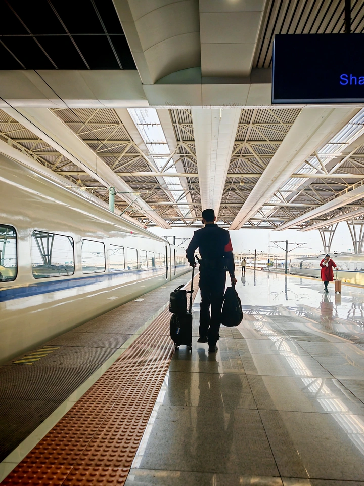 1张高铁站台的背影