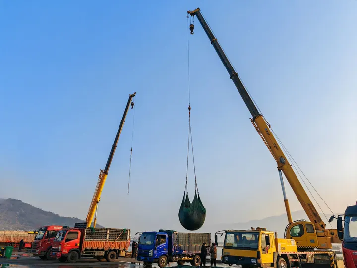 吊车铁臂轻舒,把带着海风的紫菜网兜稳稳吊起。晨光照在忙碌的码头,空气里都是海的咸香和丰收的喜悦。这就是属于我们的 “蓝色粮仓”,每一兜紫菜里,都是大海的馈赠和生活的底气。