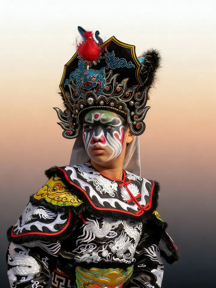 油彩覆面,掩不住少年眼底的锋芒;锣鼓声起,便扛起百年的英气。这张脸谱,一半是浓墨重彩的古意,一半是新生代的滚烫。潮汕英歌舞正由这群少年,一步一铿锵,传承不息。