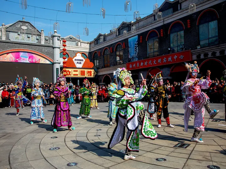 红妆明艳,绿影婆娑,鼓点铿锵震彻街头。在熙攘的闹市中,镜头定格下这一瞬最鲜活的民俗烟火。飞扬的旗帜与饱满的笑颜,是刻在骨子里的喜庆,更是非遗文化生生不息的脉搏。