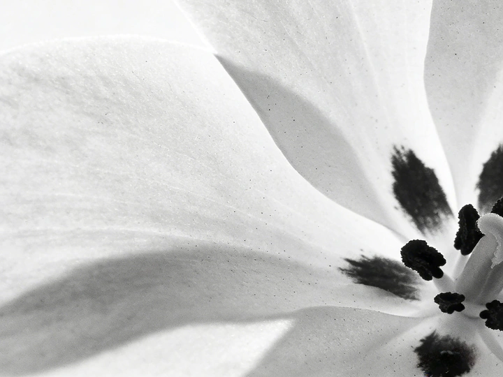 黑白影调下,花瓣上的黑斑如墨落宣纸,花蕊的黑蕊似墨点凝香,极简中透着东方水墨的留白与意韵。