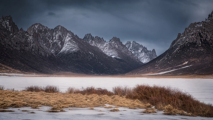 Lake of Silent Ridges 拍摄于青海果洛州久治县高原地区,海拔约4200米。三月的高原仍被寒意笼罩,湖面尚未完全消融,雪线在锋利的山脊之间延展。阴云低垂,群山沉默,天地之间只剩下风与时间的回响。#青海 #果洛 #久治县 #高原湖泊 #雪山 #冰湖 #山脉结构 #高海拔 #冷调风光 #自然地理 #风光摄影 #极简风光 #静谧氛围
