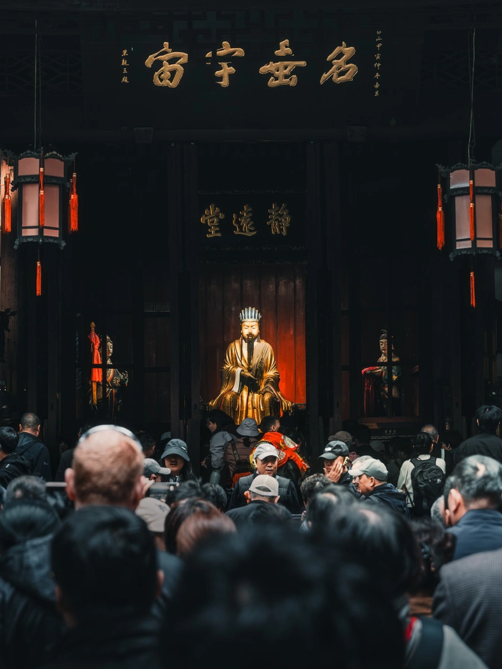 1张锦官城畔谒武侯,络绎人潮逐殿游,虽隔千年风云远,犹闻《出师表》里秋。