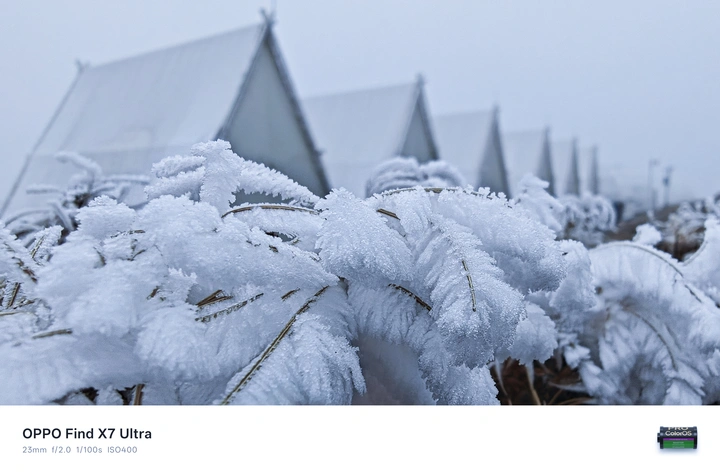 牛背山上气温突降,外面的树叶都起了冰霜,仿佛置身于冰冻世界。