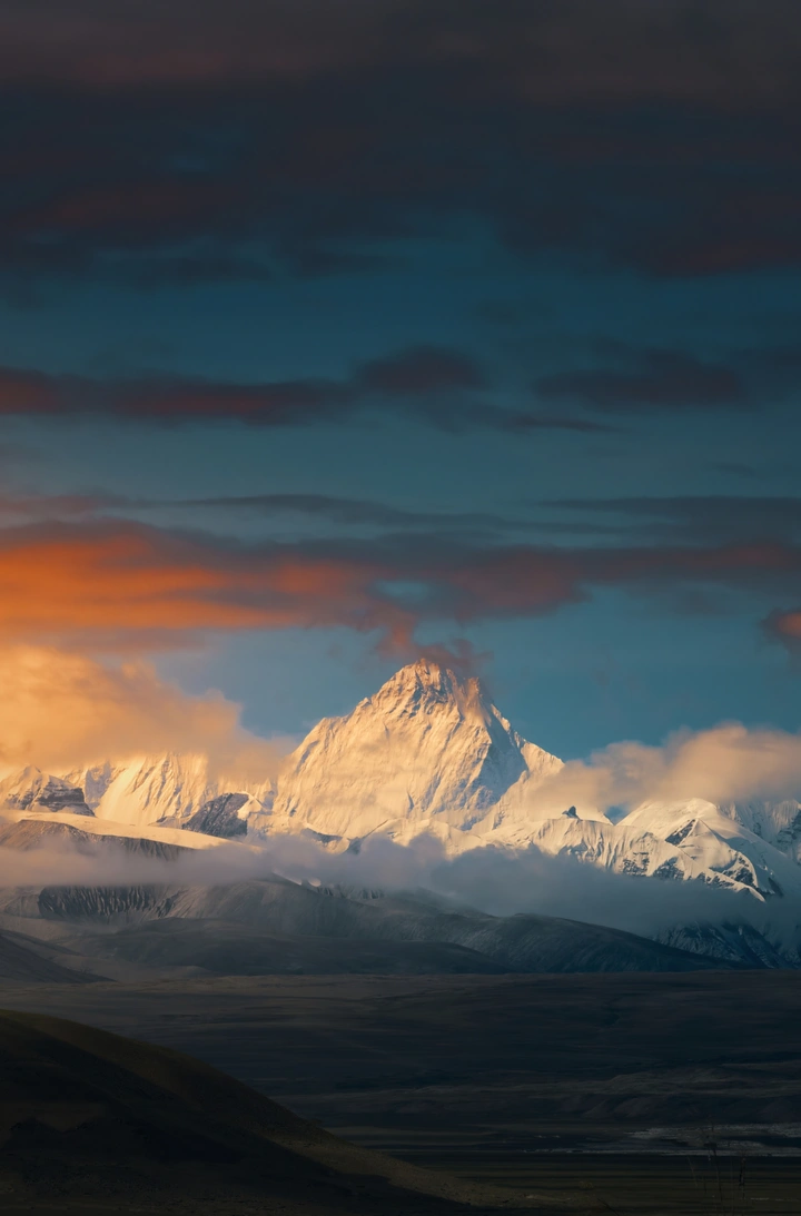 1张《岗嘎湿地:落日与珠峰的交融之境》