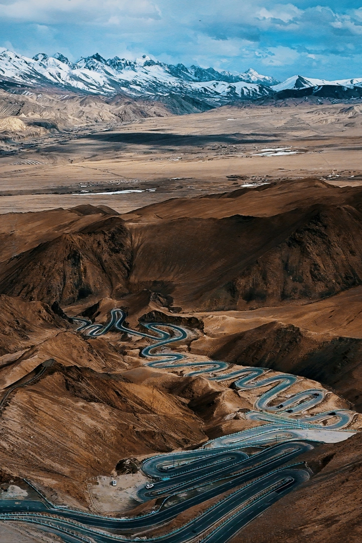 在帕米尔高原雄浑的怀抱里,盘龙古道如一条觉醒的巨龙,挣脱大地的桎梏,以 600 多个弯道为骨,在赭红山峦间肆意蜿蜒。 极目远眺,雪山列阵,银白锋刃刺破苍穹,与澄澈蓝天对峙;脚下荒原似大地裸露的古铜色胸膛,沟壑是岁月刻下的沧桑纹路。盘龙古道穿梭其间,每一道弯都像史诗里的章节,是人类勇气与自然伟力碰撞出的壮丽符号。车轮碾过弯道,似以坚韧为墨、勇气作笔,在天地长卷续写征服险途的豪迈,也晕染开对莽莽自然的深深敬畏。。。